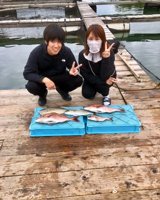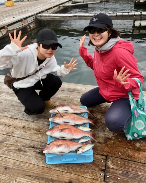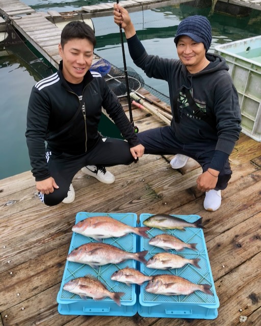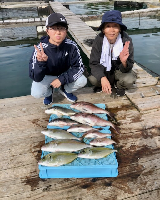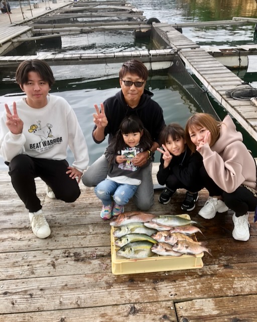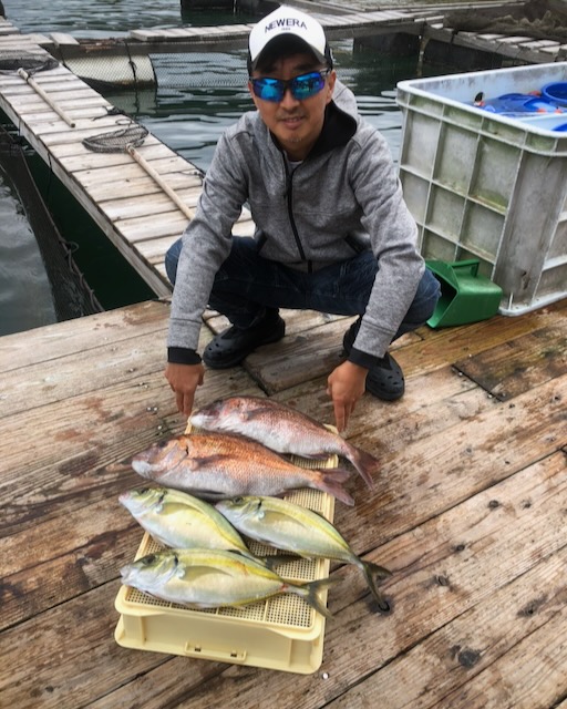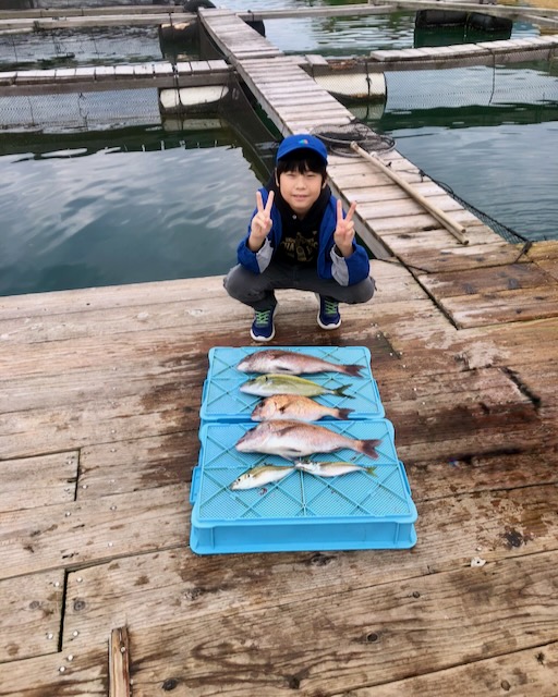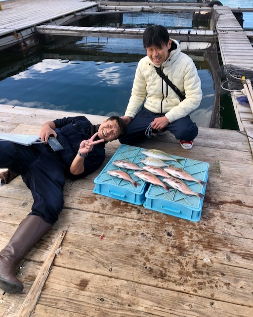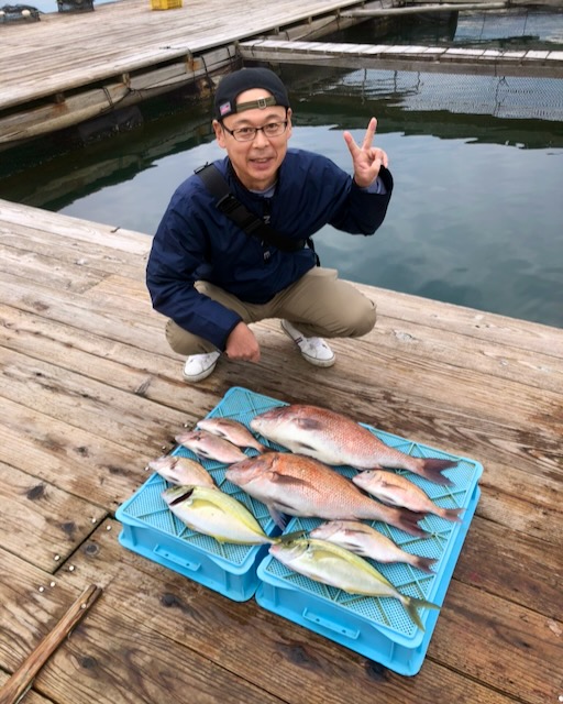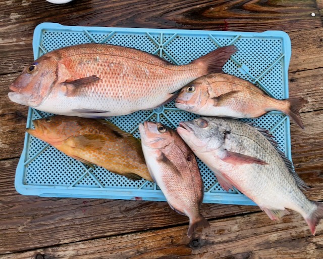 クロダイ、メイチダイ 、メジナ、ワタリガニ、ヤズ、ハマチ、青アジ、マハタ、ウスバハギ、マゴチ、コロダイ、ヒラメ、アカエイ、ミノカサゴ、キジハタ、オオモンハタ