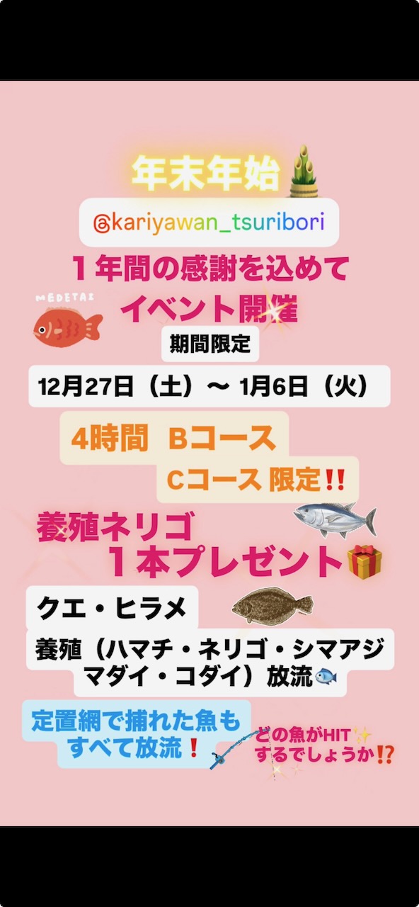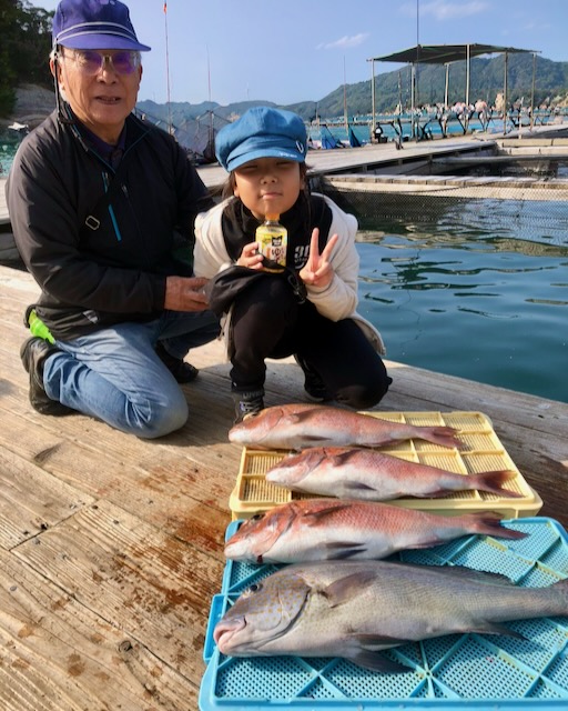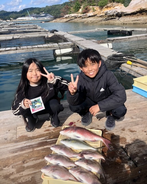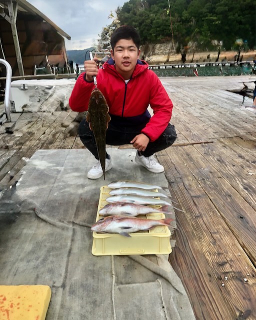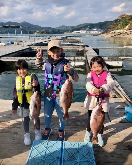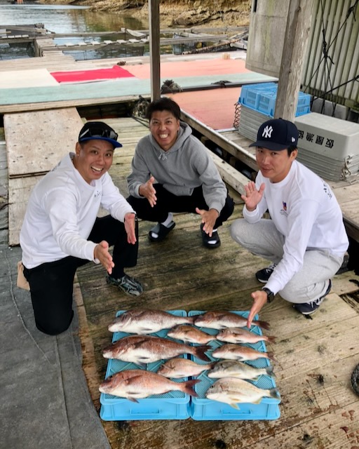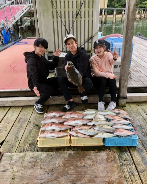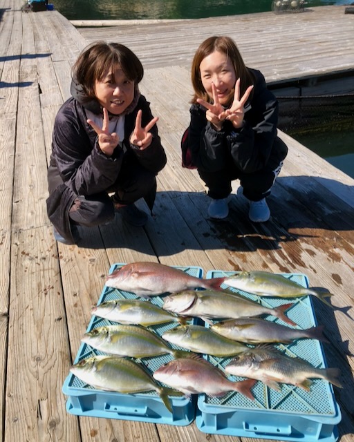 クロダイ、メイチダイ 、メジナ、ワタリガニ、ヤズ、ハマチ、青アジ、マハタ、ウスバハギ、マゴチ、コロダイ、ヒラメ、アカエイ、ミノカサゴ、キジハタ、オオモンハタ