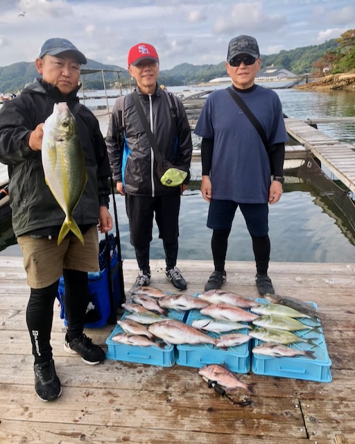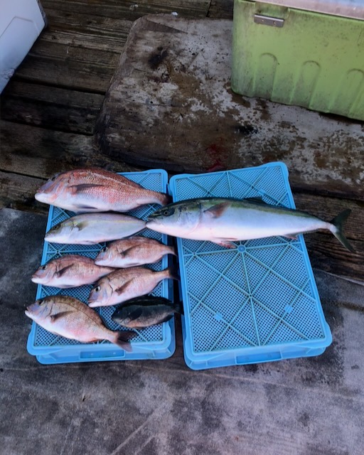 釣れた魚:ハマチ、ネリゴ、ヒラゴ、マダイ、イサキ、マゴチ、シマアジ、マダイ、コロダイ、チヌ、コショウダイ