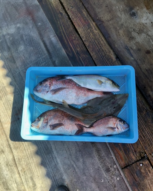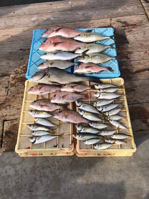 、コロダイ、チヌ、コショウダイ、バリ、スズキ、アカエイ大、イスズミ特大、キビレチヌ、メジナ、キジハタ極小、ウスバハギ、青アジ、他