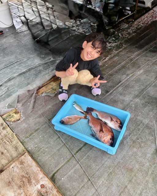 釣れた魚:ヒゲダイ、石鯛、ハマチ、ヒラマサ、ネリゴ、イトイキアジ、真鯛、メイチダイ、イサキ、シマアジ、ヘダイ、クロダイ、コロダイ、ヒラメ、マゴチ、カワハギ、ウスバハギ、アジ、サバ、コショウダイ、アカエイ