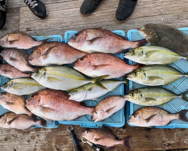 コロダイ、青ハタ、マゴチ、黒鯛、マダイ、ハマチ、シマアジ