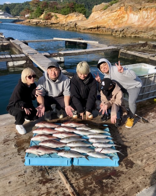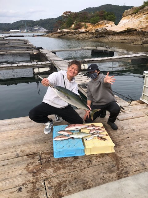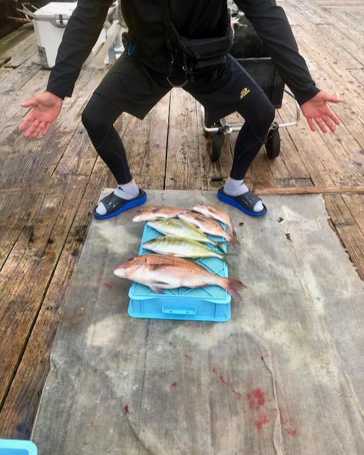 釣れた魚:ブリ、ネリゴ、ヒラゴ、マダイ、イサキ、マゴチ、シマアジ、マダイ、コロダイ、チヌ、コショウダイ、バリ、スズキ