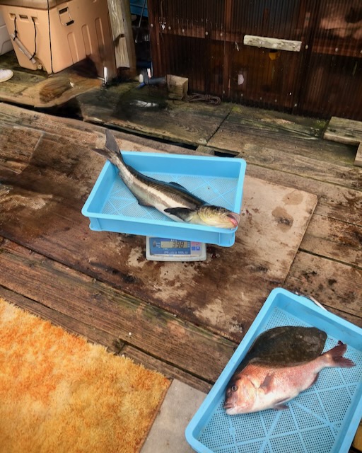 釣れた魚:ヒラメ、スズキ、イサキ、オコゼ、カワハギ、甘鯛、石鯛、