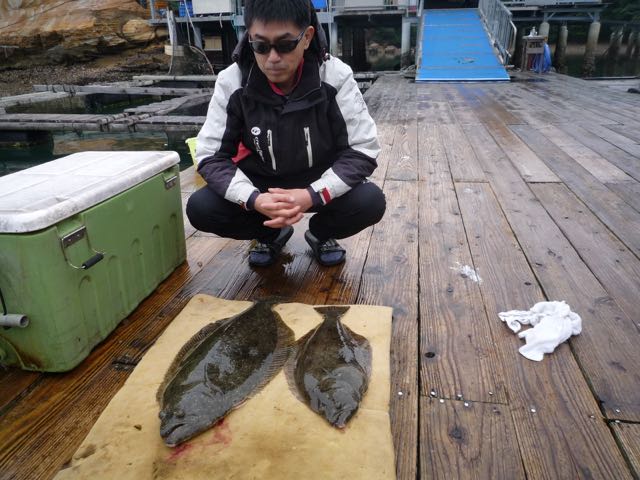 11月16日 西田さん ヒラメ 1.5K 4.0K えさ 活きあじ