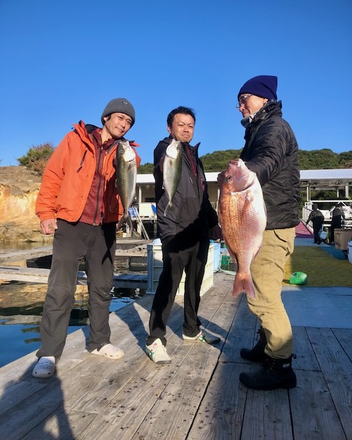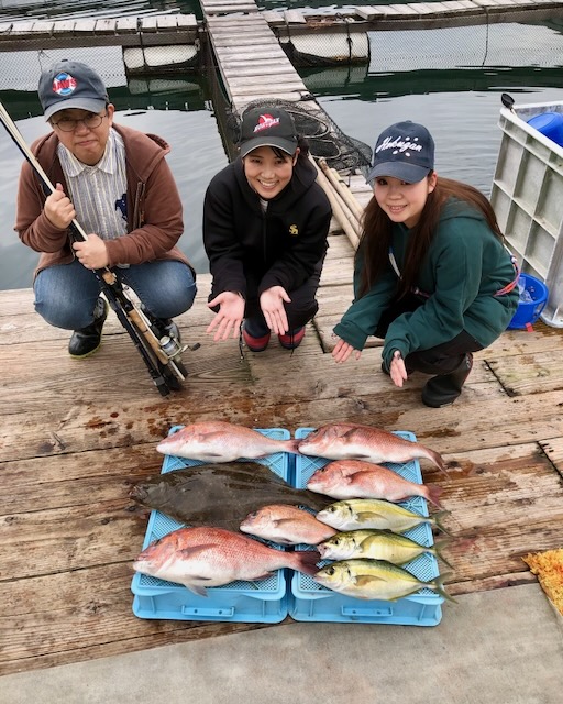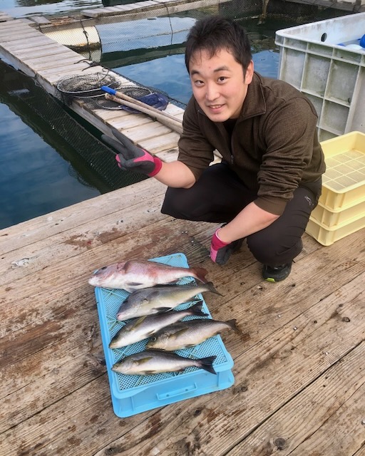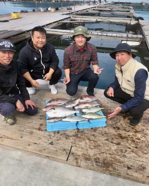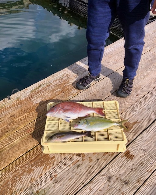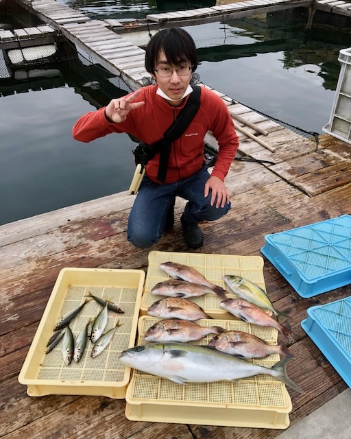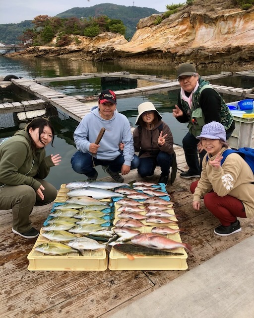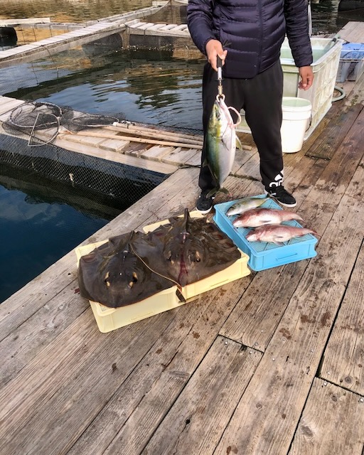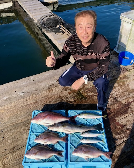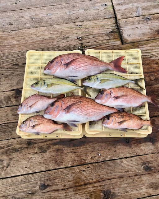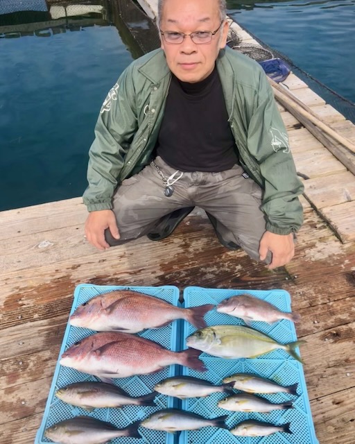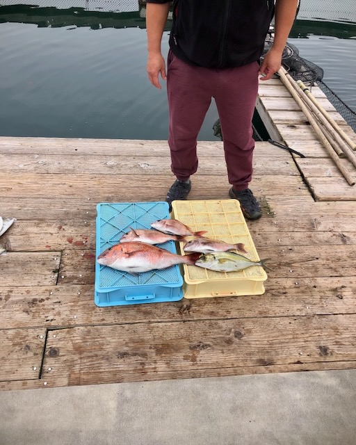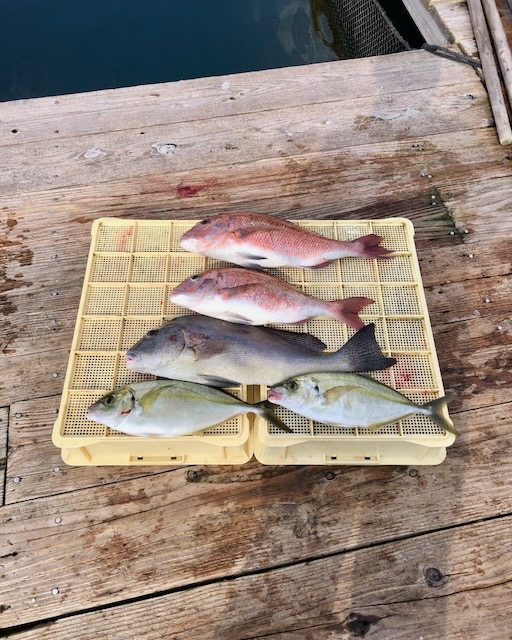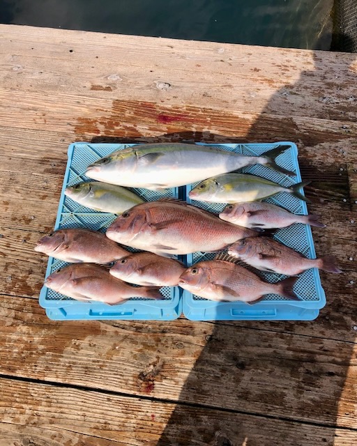 クロダイ、メイチダイ 、メジナ、ワタリガニ、ヤズ、ハマチ、青アジ、マハタ、ウスバハギ、マゴチ、コロダイ、ヒラメ、アカエイ、ミノカサゴ、キジハタ、オオモンハタ