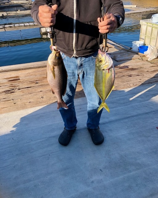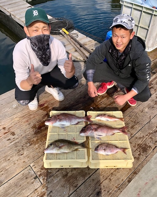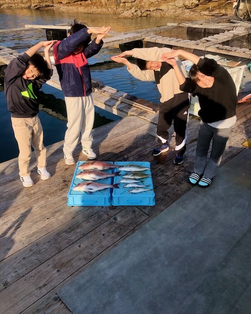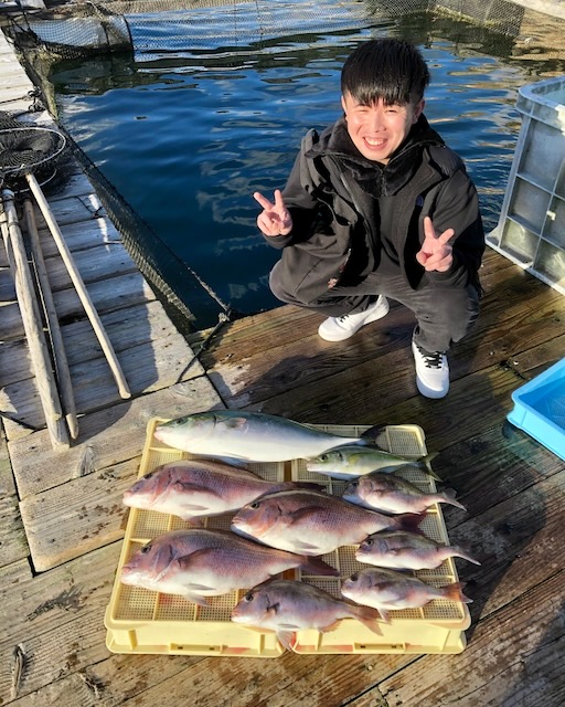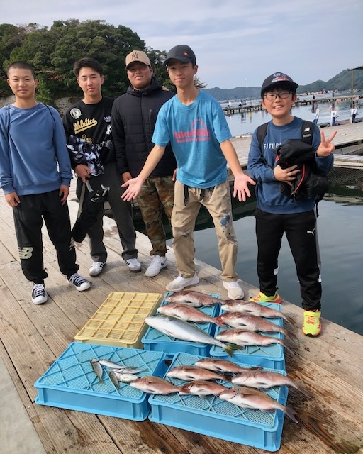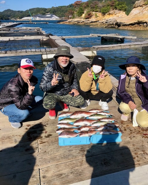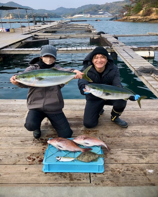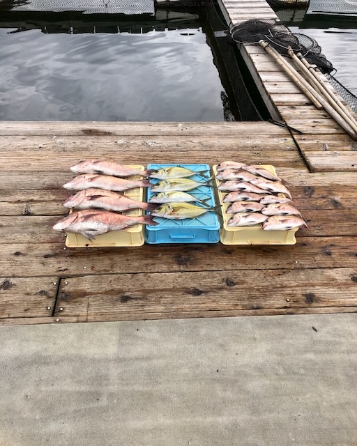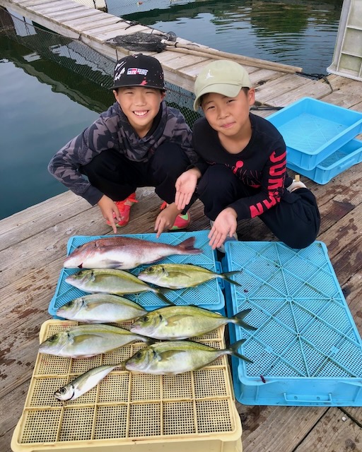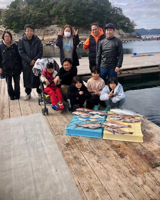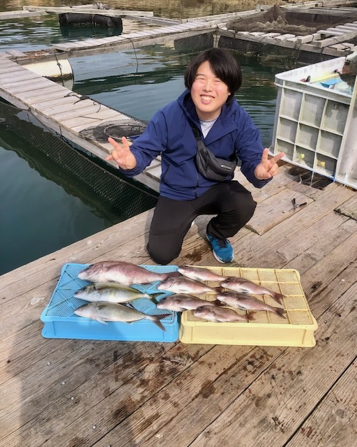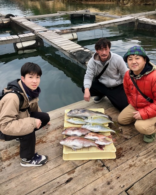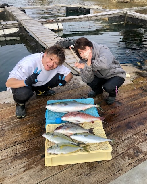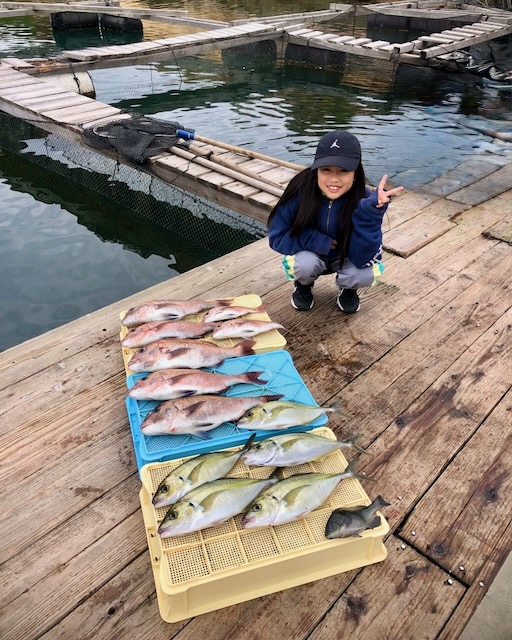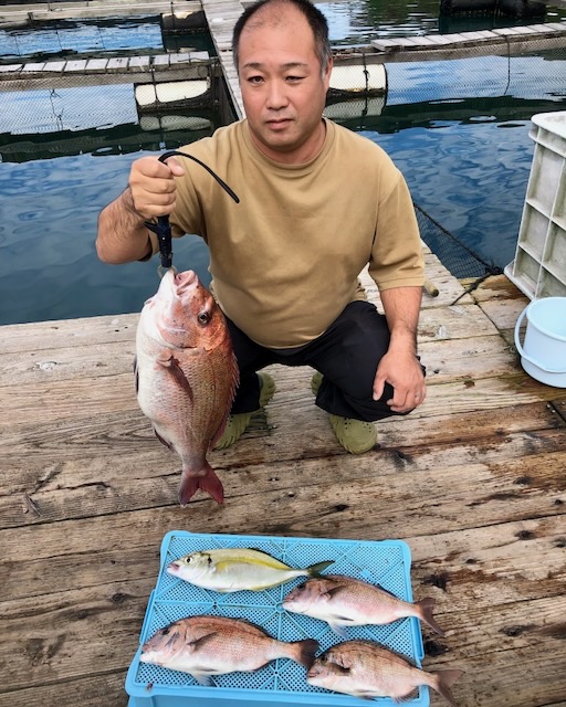 クロダイ、メイチダイ 、メジナ、ワタリガニ、ヤズ、ハマチ、青アジ、マハタ、ウスバハギ、マゴチ、コロダイ、ヒラメ、アカエイ、ミノカサゴ、キジハタ、オオモンハタ