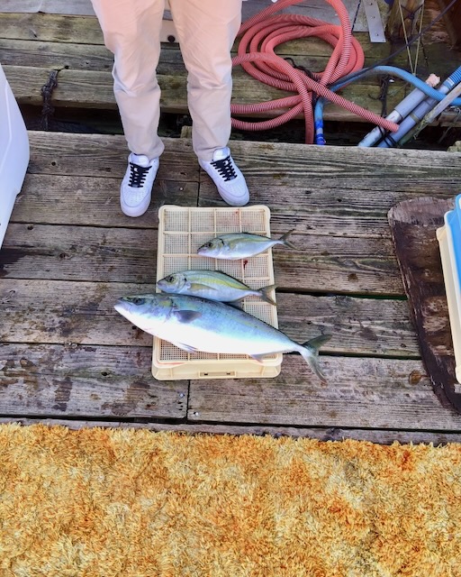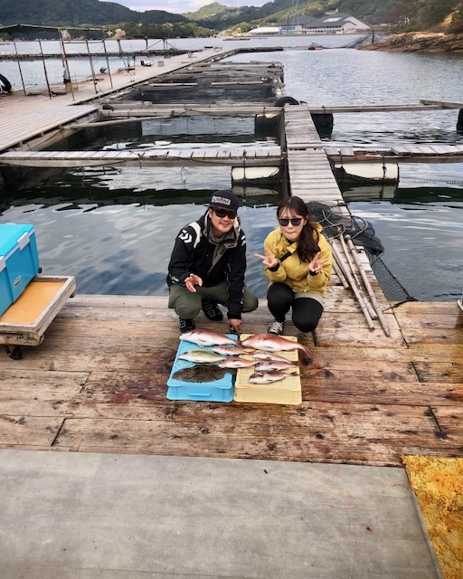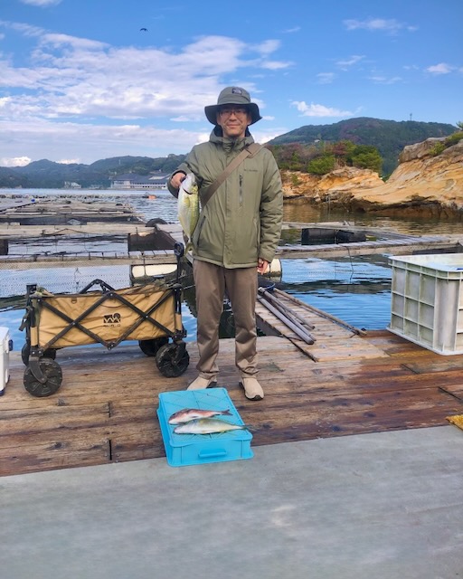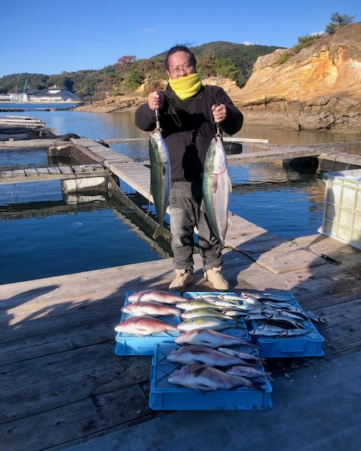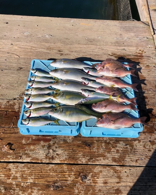 釣れた魚:ブリ、ネリゴ、ヒラゴ、マダイ、イサキ、マゴチ、シマアジ、マダイ、コロダイ、チヌ、コショウダイ、バリ、スズキ