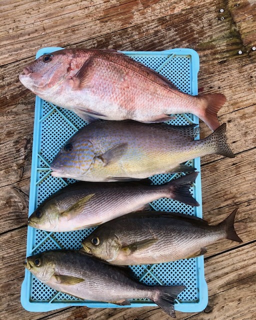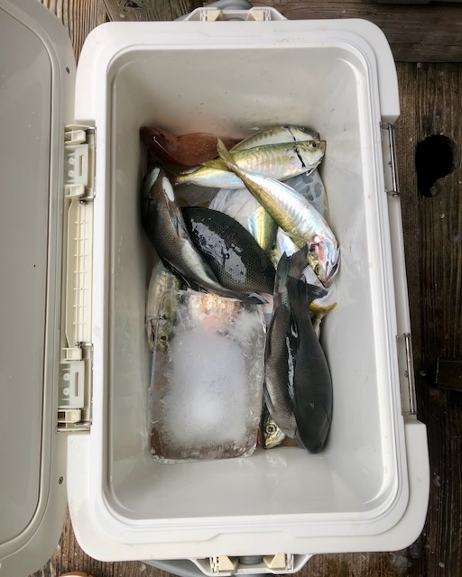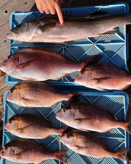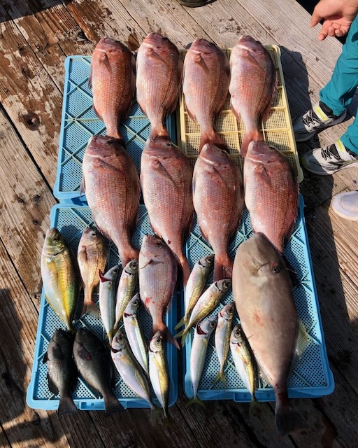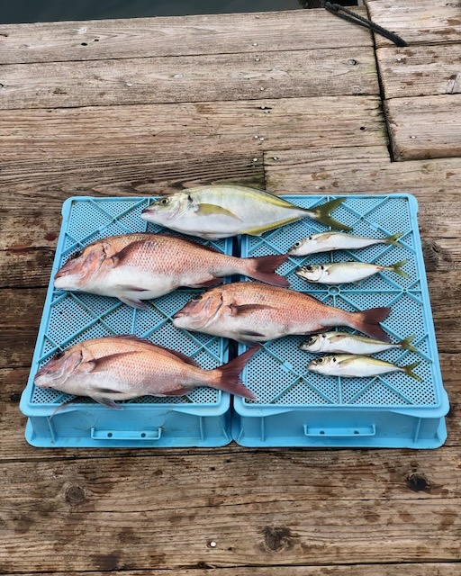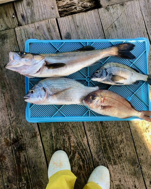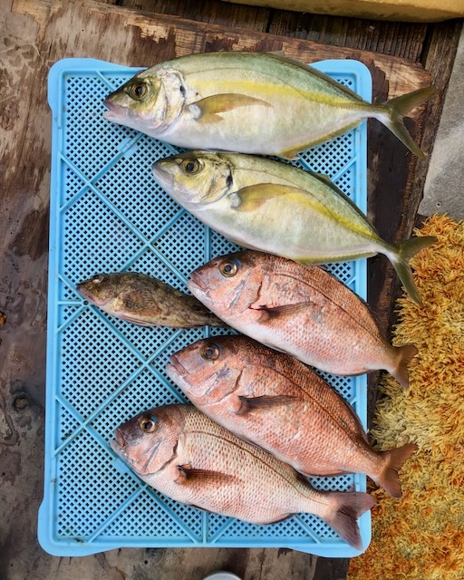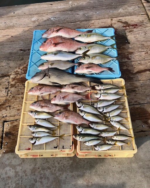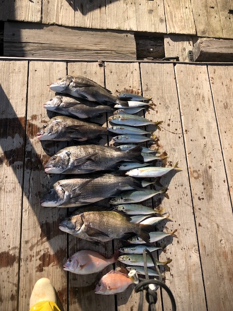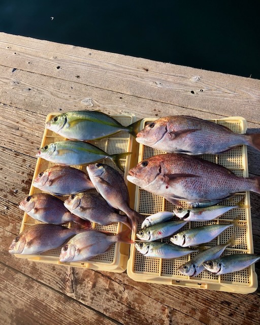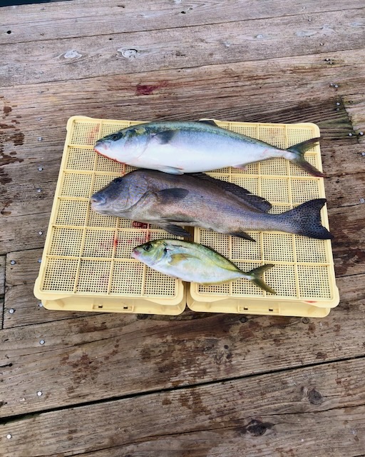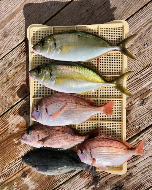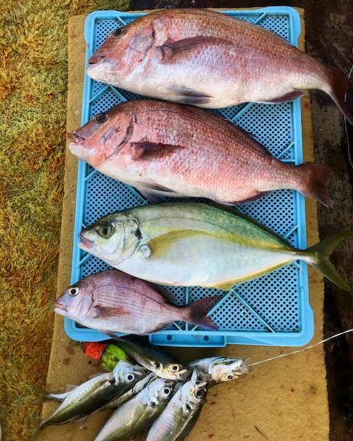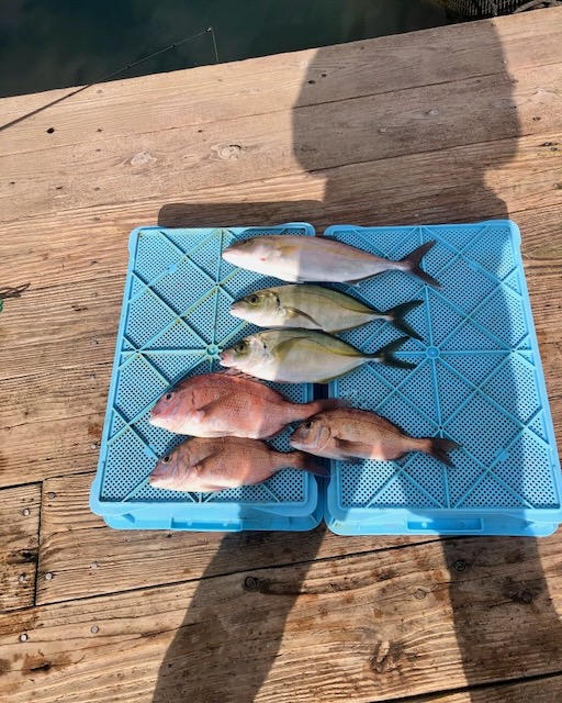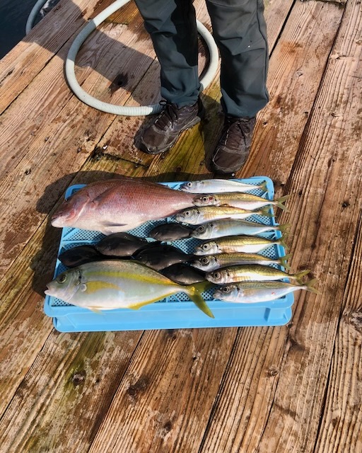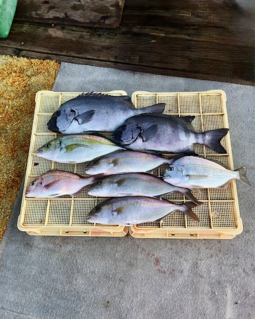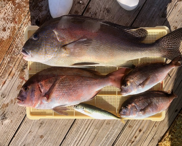 、コロダイ、チヌ、コショウダイ、バリ、スズキ、アカエイ大、イスズミ特大、キビレチヌ、メジナ、キジハタ極小、ウスバハギ、青アジ、他