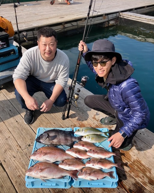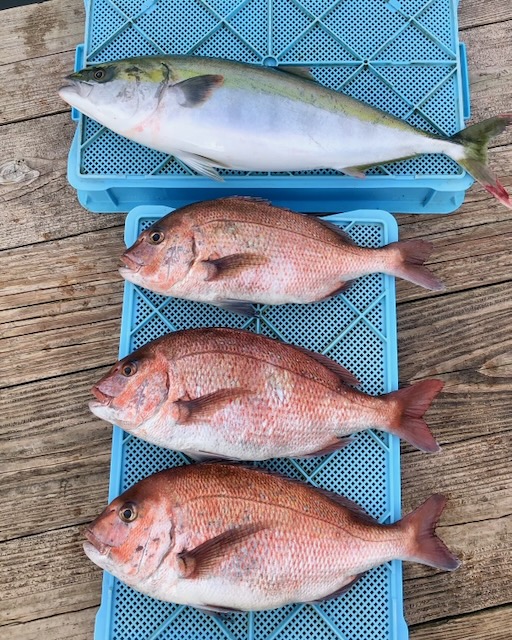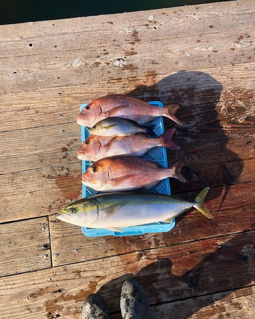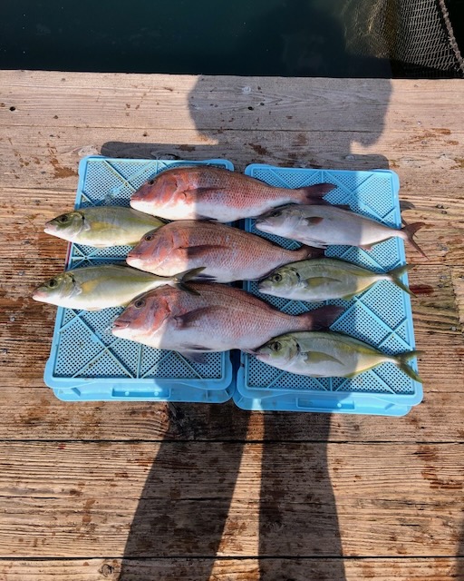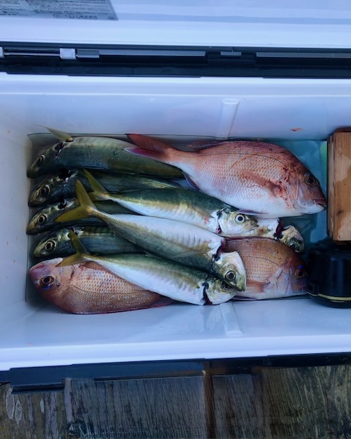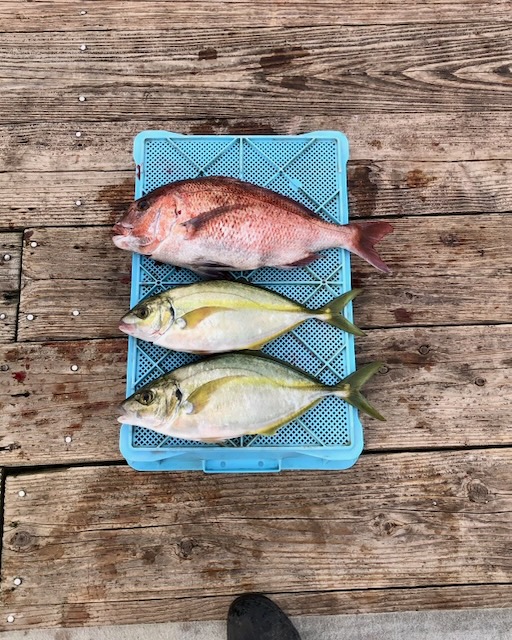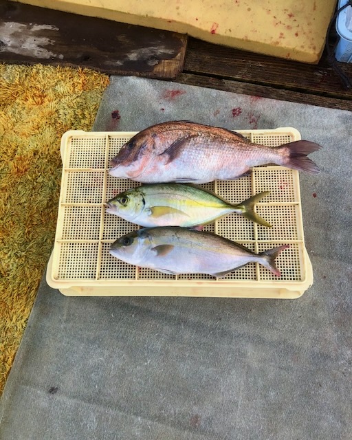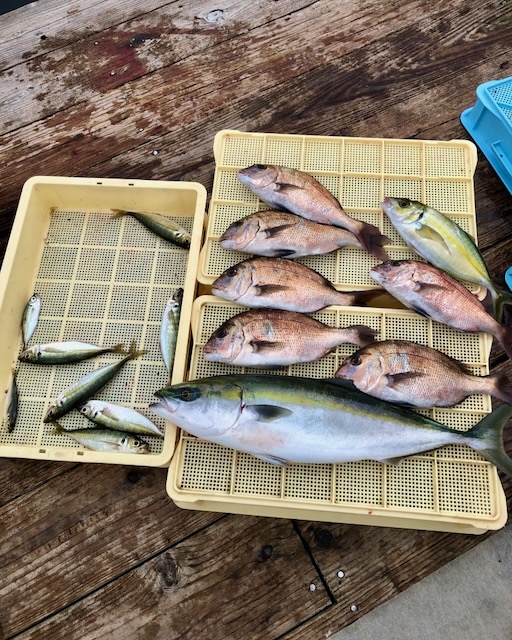 釣れた魚:ハマチ、ネリゴ、ヒラゴ、マダイ、イサキ、マゴチ、シマアジ、マダイ、コロダイ、チヌ、コショウダイ