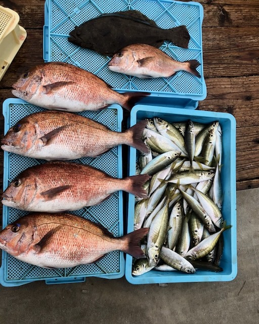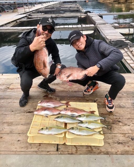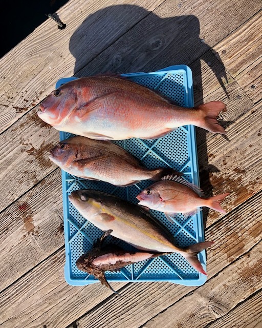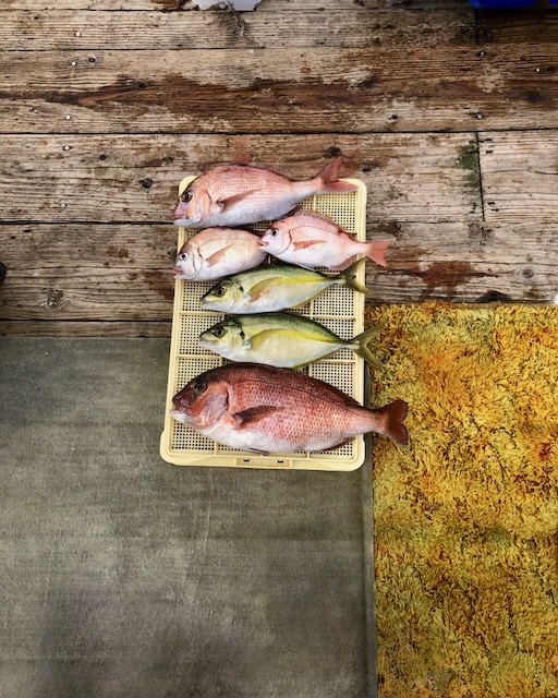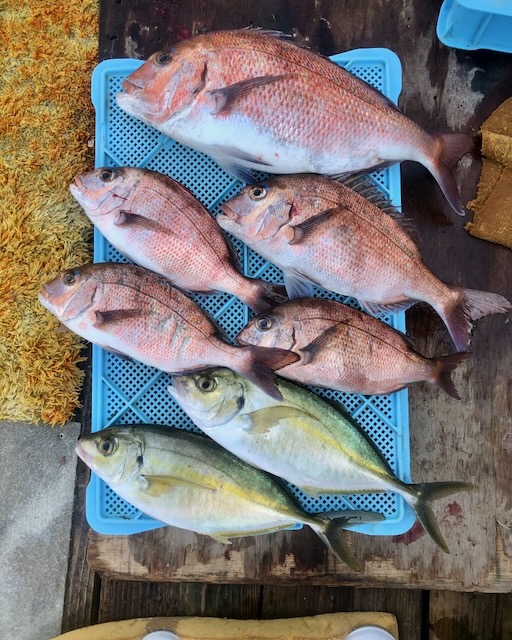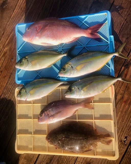 コロダイ、青ハタ、マゴチ、黒鯛、マダイ、ハマチ、シマアジ