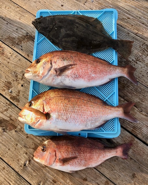 釣れた魚:ヒラメ、スズキ、イサキ、オコゼ、カワハギ、甘鯛、石鯛、
