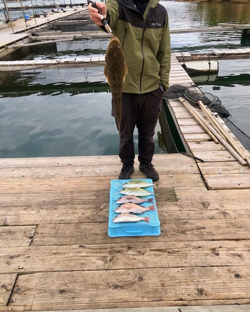 釣れた魚:クエ、ヒラマサ、ヒラメ、スズキ、イサキ、オコゼ、カワハギ、カンパチ、石鯛、