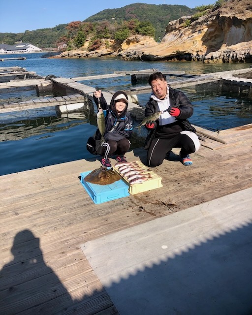釣れた魚:ヒゲダイ、石鯛、ハマチ、ヒラマサ、ネリゴ、イトイキアジ、真鯛、メイチダイ、イサキ、シマアジ、ヘダイ、クロダイ、コロダイ、ヒラメ、マゴチ、カワハギ、ウスバハギ、アジ、サバ、コショウダイ、アカエイ